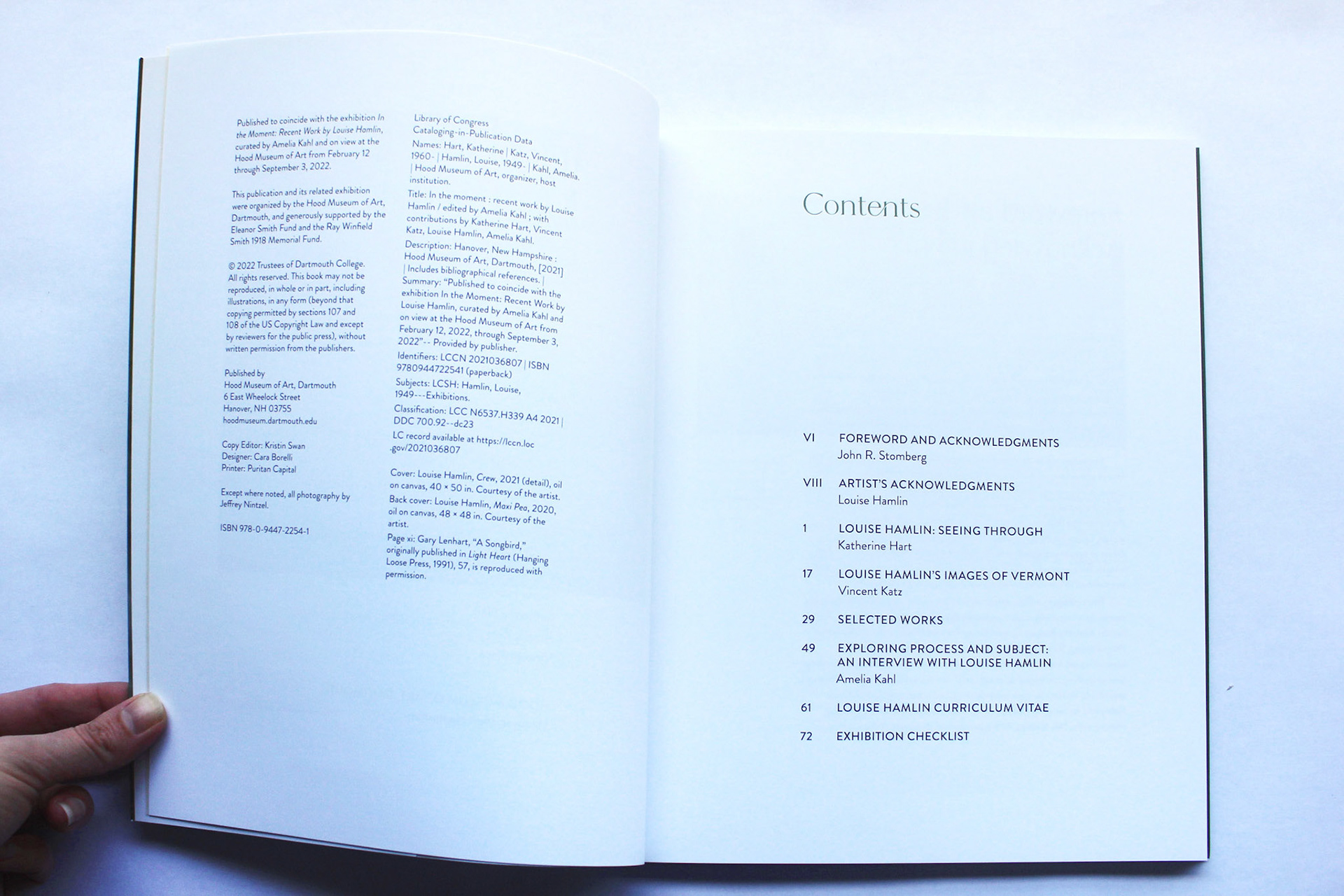 This project involved the concept development and full design of a 74-page catalogue published to coincide with the exhibition "In the Moment: Recent work by Louise Hamlin" at the Hood Museum of Art. The objective was to create a publication that honored the artwork, supported curatorial research, and functioned as a lasting artifact—extending the life of the exhibition beyond the gallery space.