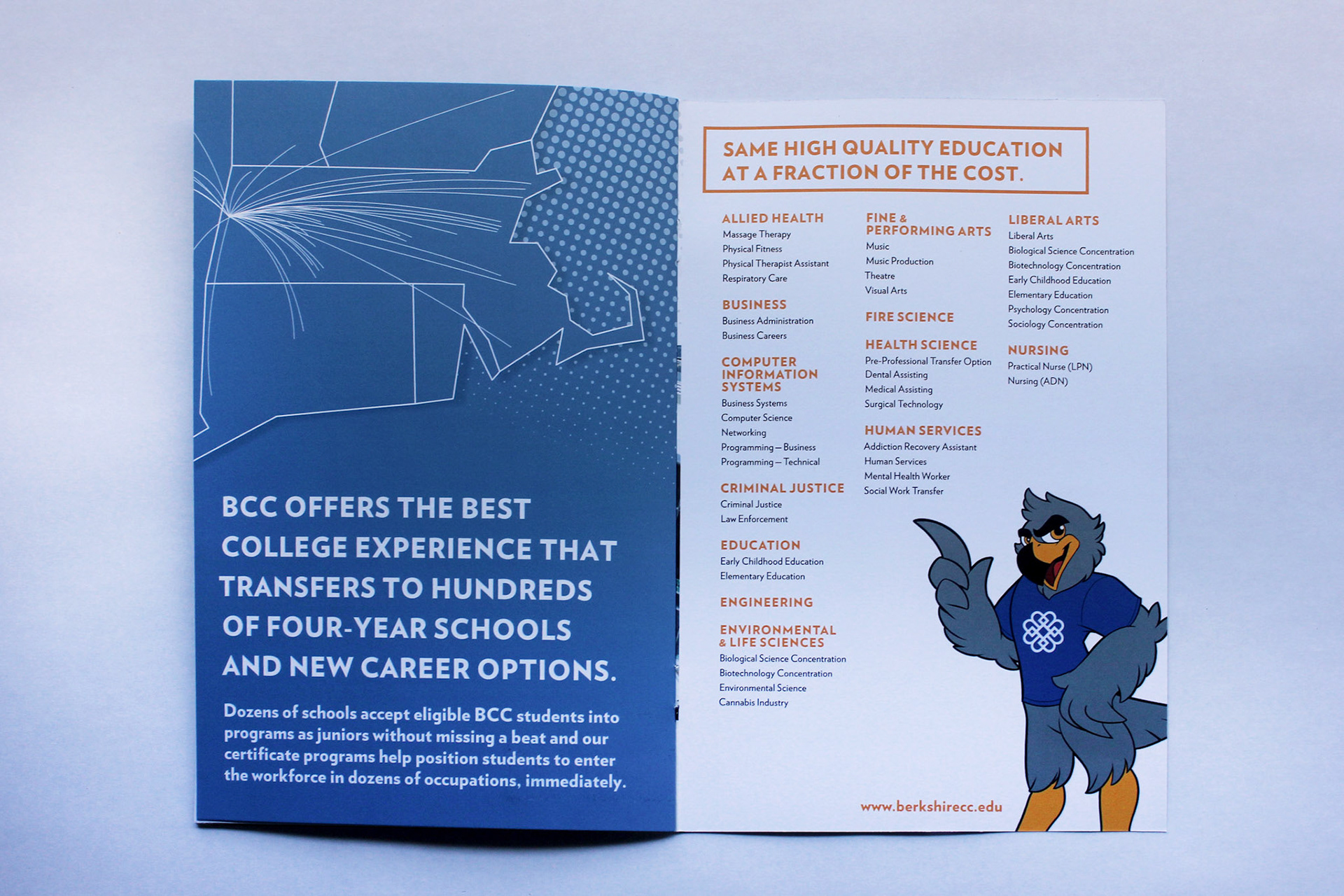 This project involved the concept development and full design of an undergraduate admissions viewbook aimed at prospective students. The publication serves as a primary recruitment tool—introducing the college’s academic strengths, campus culture, and student experience through compelling storytelling and immersive visuals. The challenge was to translate the college’s identity into a cohesive visual narrative that resonates with a community college's diverse audience.